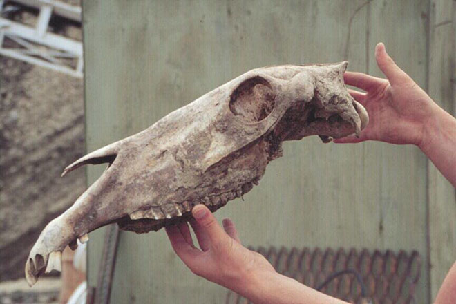 Late Pleistocene horse skull, Equus lambei, from the Klondike region, Yukon. Credit: D.G. Froese