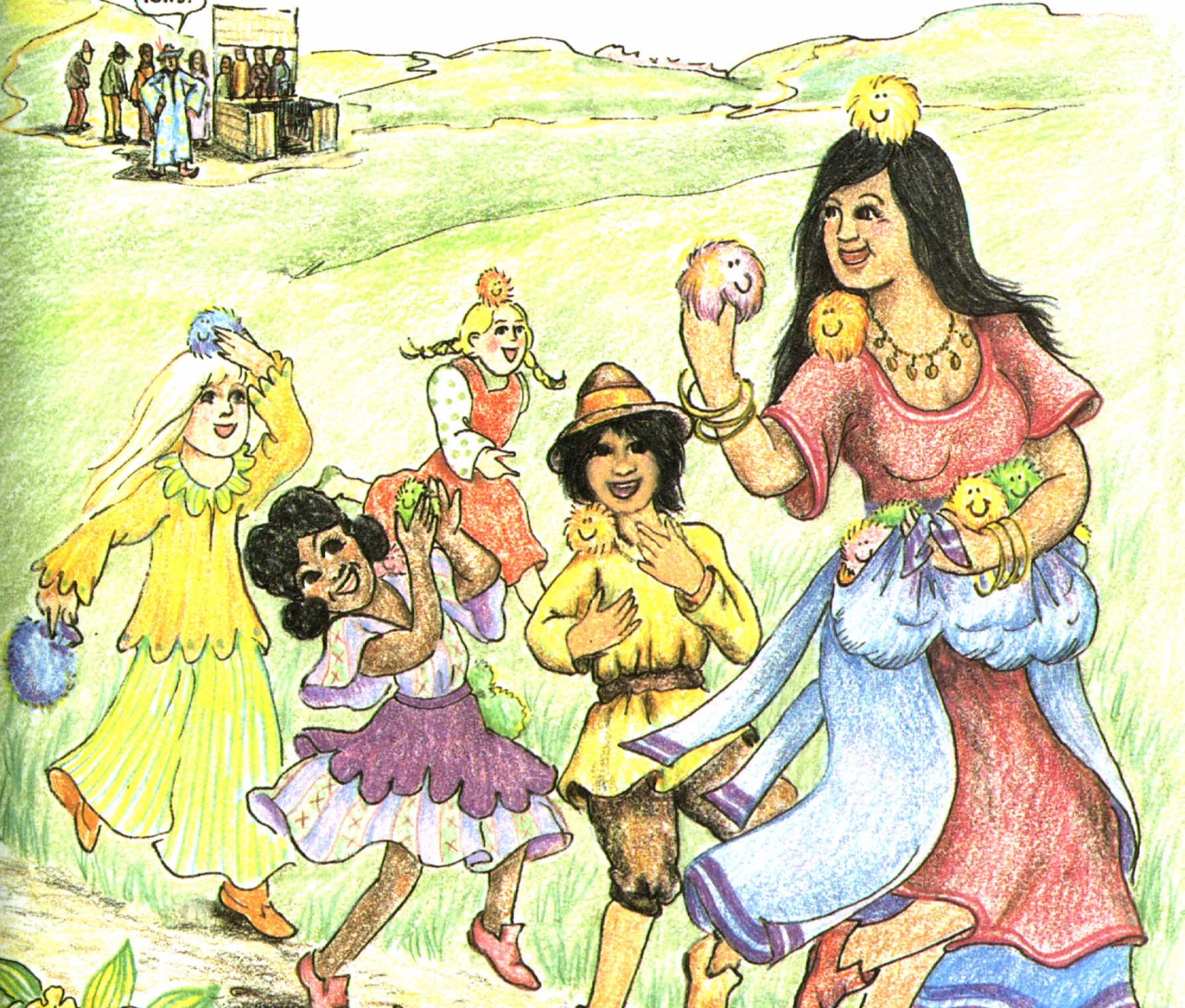 Not long ago, a young woman with big hips came to this unhappy land. She seemed not to have heard about the bad witch and was not worried about running out of Warm Fuzzies. She gave them out freely, even when not asked. They called her the Hip Woman and disapproved of her because she was giving the children the idea that they should not worry about running out of Warm Fuzzies. The children liked her very much because they felt good around her and they began to follow her example giving out Warm Fuzzies whenever they felt like it.