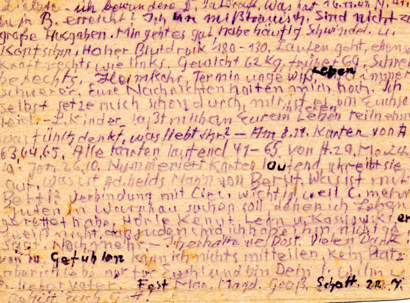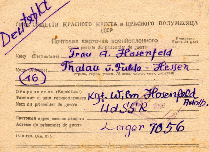 Letter Hosenfeld sent to his family from the Soviet POW camp