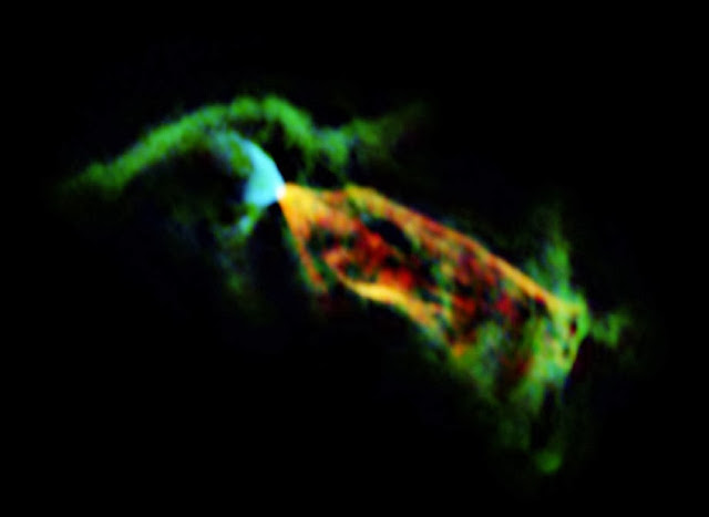 Herbig-Haro 46/47 is releasing two jets of materials at high speeds, causing gases around the young star to glow. Astronomers using the Atacama Large Millimeter Array captured this glow, revealing a more energetic star than previously thought.