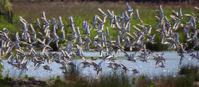 What a bird! There are 70,000 of them, but they seem to be losing population. The trek back north in the spring takes them west, to Asia, where they stop and feed. Wetlands are being drained in that part of the world, which may make it hard for them to make the last leg home to Alaska. It would be a terrible thing to have these fierce, athletic birds wink out.