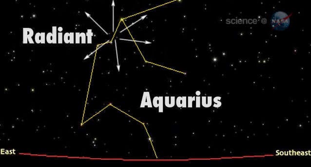 The radiant (the origin point of these meteors) is within the "Water Jar" of the constellation Aquarius, which begins to rise above the eastern horizon around 3 a.m. your local time, but unfortunately, never really gets very high as seen from north temperate latitudes. And soon after 4 a.m., morning twilight will begin to brighten the sky.