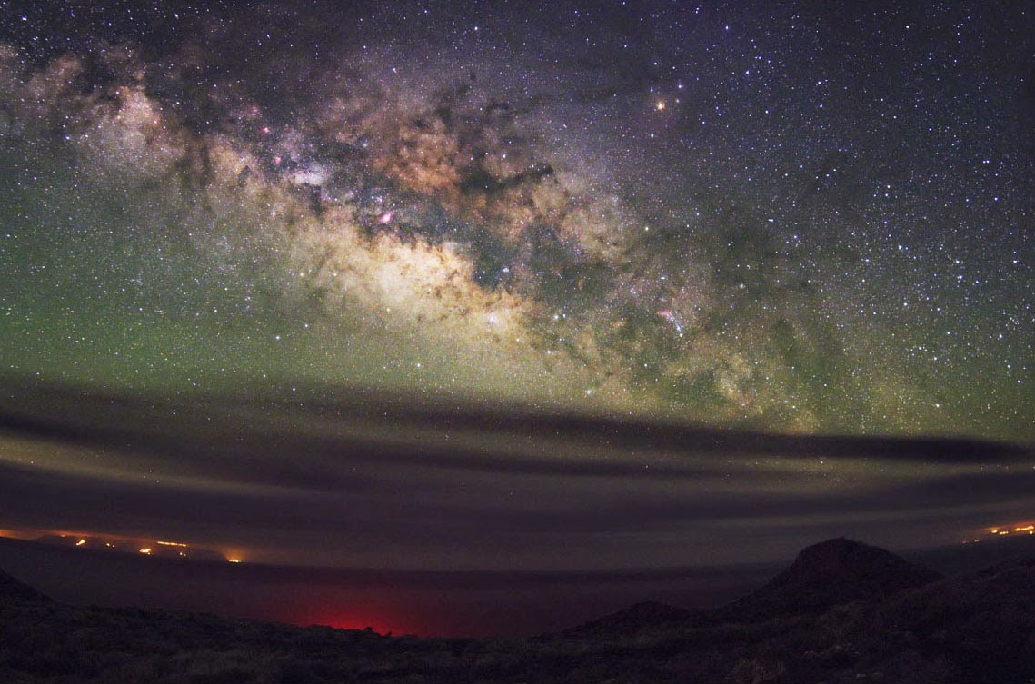 Green airglow shimmers atop translucent clouds as the Milky Way rises over a remote island off the northwest coast of Africa in a majestic photo recently sent to Space.com.  Credit: project nightflight
