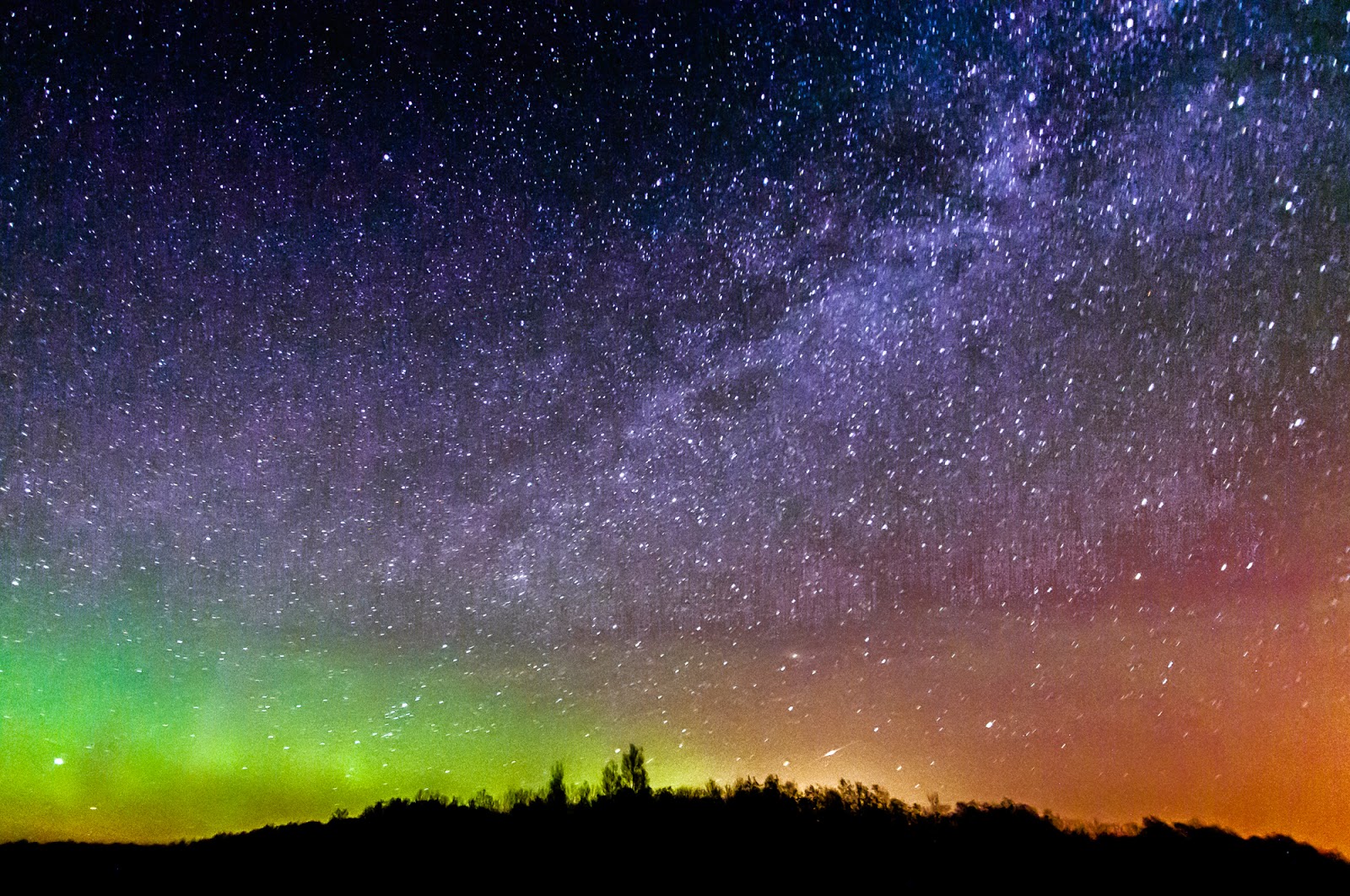 A small Camelopardalid meteor streaks through the northern lights as the Milky Way shines overhead in this stunning photo by stargazer Gail Lamm from Balmoral, Manitoba in Canada on May 24, 2014.